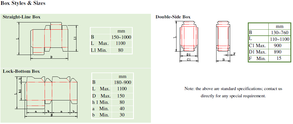 General box type: Lock-Bottom BoxDouble-Side BoxStraight-Line Box