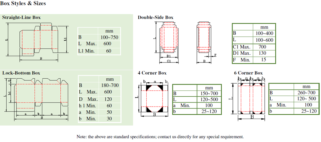 General box type: 6 Corner Box4 Corner BoxLock-Bottom BoxDouble-Side BoxStraight-Line Box