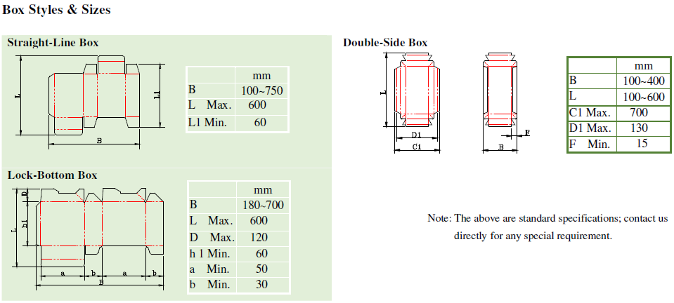 General box type: Lock-Bottom BoxDouble-Side BoxStraight-Line Box