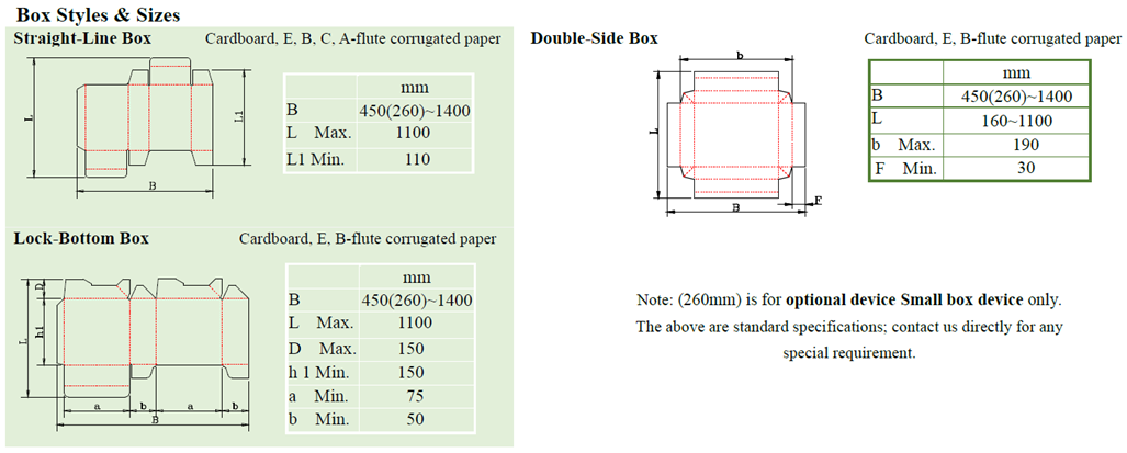 6.Capable to fold several type of material, such as cardboard, E-flute, B-flute, C-flute, A-flute (horizontal) corrugated paper.